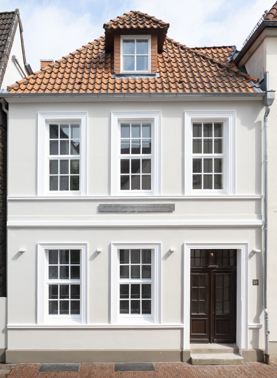 Nach aufwändigen Umbau- und Sanierungsarbeiten im Erdgeschoss und Keller sind im Vordemberge-Gildewart–Haus neben dem Stiftungsbüro auch Flächen entstanden, die auf vielfältige Weise für Ausstellungen und Veranstaltungen genutzt werden können. Im Eingangsbereich des Hauses informiert zudem eine Glasinstallation über das Haus sowie Leben und Werk des Künstlers Vordemberge-Gildewart.