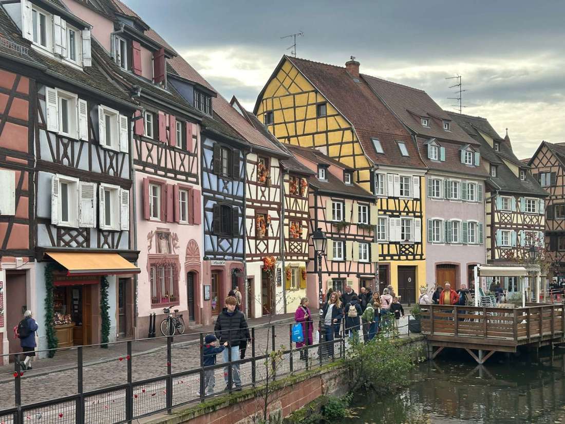 In der Petite Venise sind solche Ansichten oft nur ein paar Schritte vom Wasser entfernt. Ein Tagesausflug nach Colmar besteht dann nicht aus einem Ziel, sondern aus Blicken wie diesem. Man geht weiter, aber der Gedanke bleibt kurz hängen – an einem Balkon, an einem Fenster, an der Selbstverständlichkeit, mit der hier gewohnt wird. Oder doch alles Unterkünfte von Airbnb? Man wird es nicht erfahren. Aber wo wohnen all die Asiaten, die hier herumwuseln?