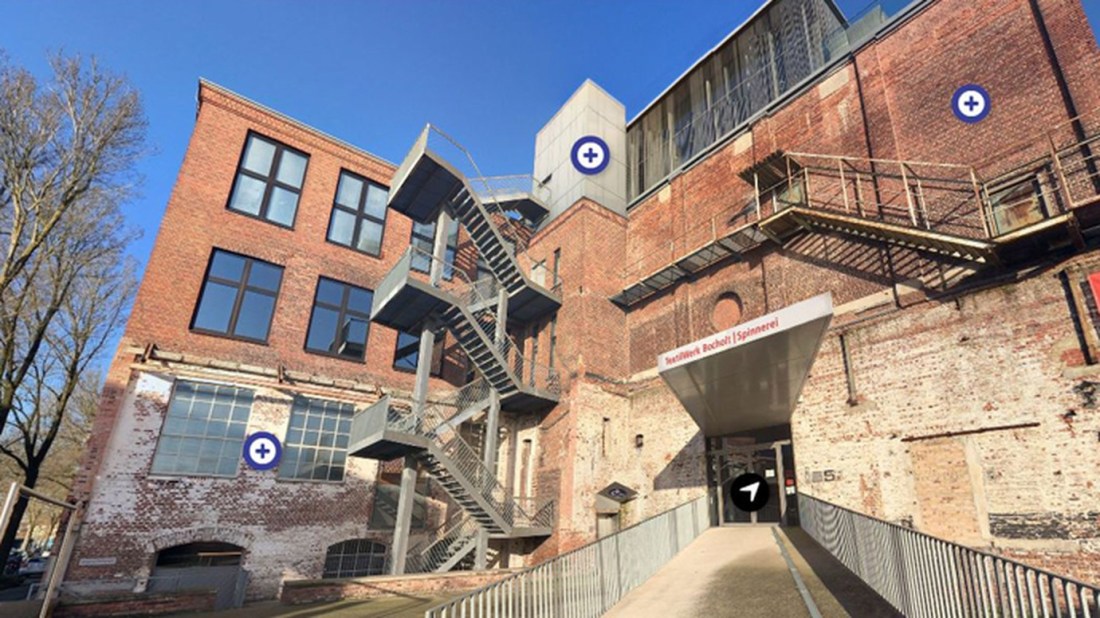 Der Clou ist ein digitales Rollenspiel: Besuchende lernen dabei den Arbeitsalltag aus der Sicht eines Webers kennen, der 13 verschiedenen Personen begegnet. Darunter befinden sich eine Passiererin, die für die Vorbereitung der Webketten zuständig war, der Maschinist, der Heizer und ein Büroangestellter.